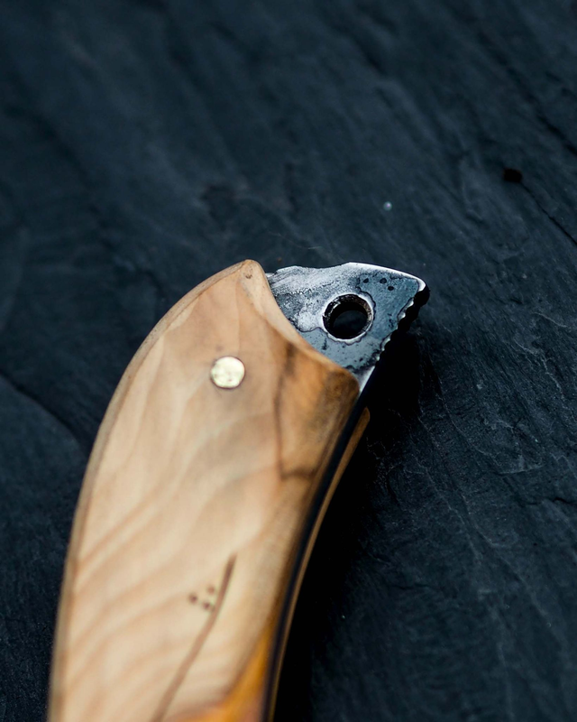 La lame est entièrement forgée au marteau.